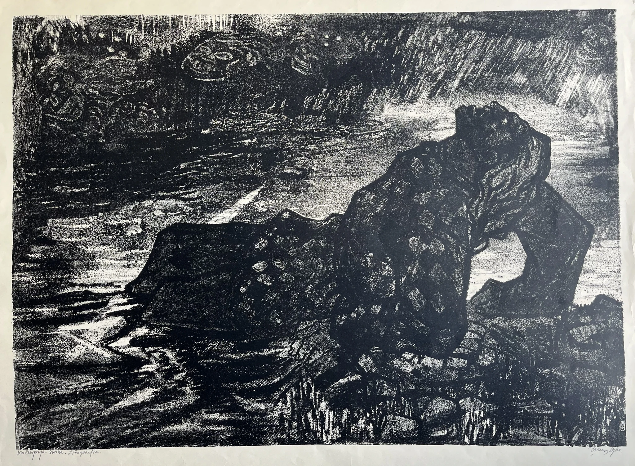 Litograafia 5/10, raamimata, lehe mõõt 70 x 99,5 cm